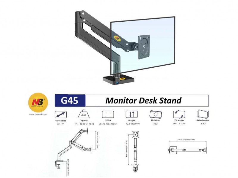 ■適合絕大多數22"-40"顯示器 ■承載範圍:(2-15 kg) ■ VESA支持孔位75x75, 100x100 mm ■可升降距離: 12.6” (320mm ) ■高度:520MM(MAX) ■臂長:630MM(MAX) ■顏色:黑色
