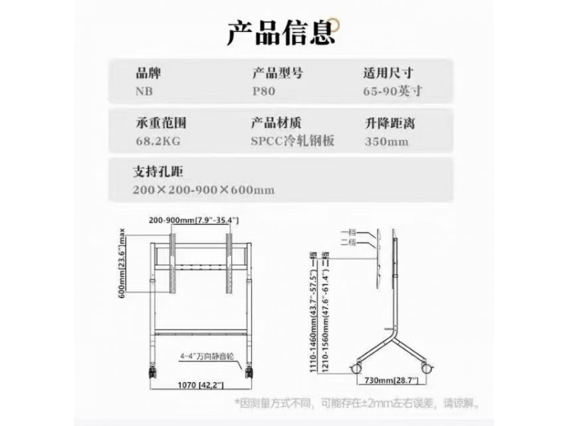 總高度調節範圍 第一檔 1110-1460mm 第二檔 1210-1560mm